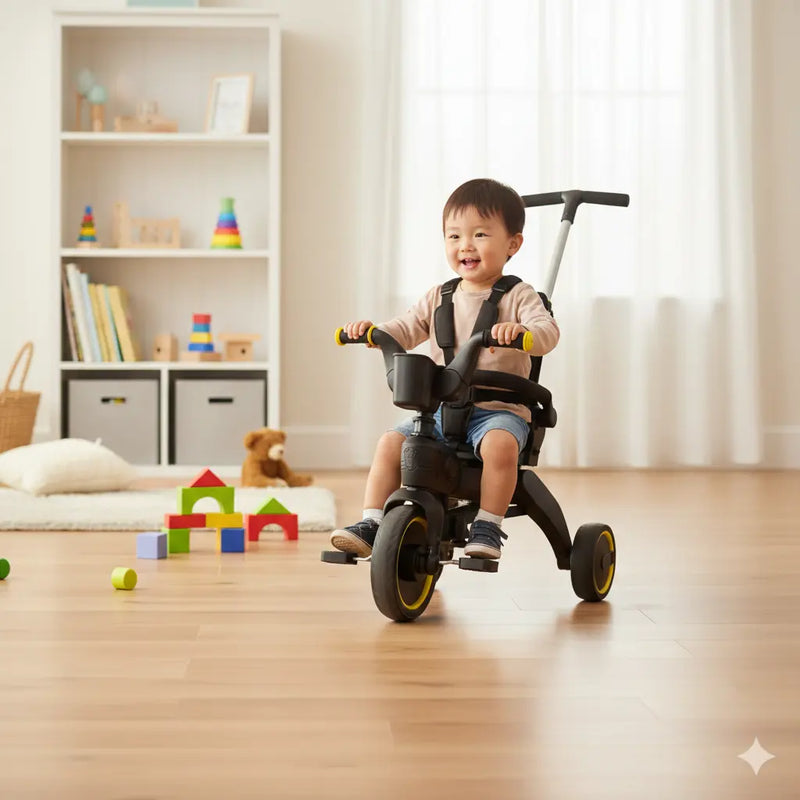 ★ Multi-Functional Ride 🌈: Folds compactly for easy storage and travel. Unfolds into a stable 3-wheel tricycle for both indoor and outdoor fun, giving toddlers a safe and joyful ride!